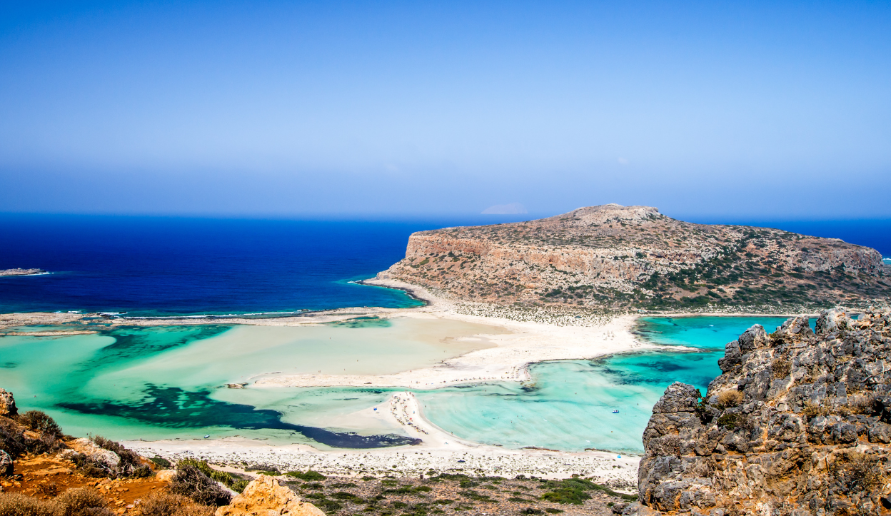 Navagio Beach in Zakynthos offers turquoise water, white cliffs, and the famous shipwreck, making it Greece’s most iconic shoreline.